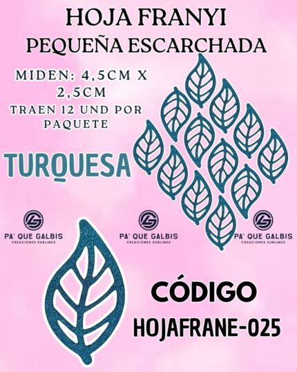 HOJAS PEQUEÑAS FRANYI TURQUESA METALIZADAS 1 PAQUETE CONTIENE 12 UND CÓDIGO HOJAFRANM-025