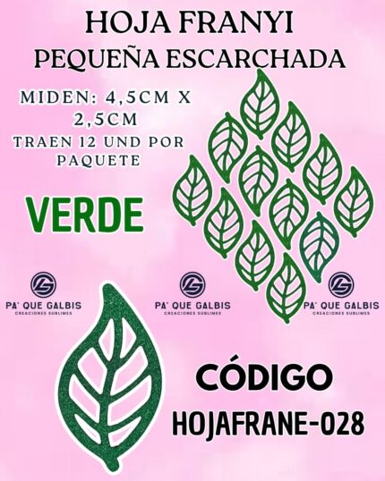 HOJAS PEQUEÑAS FRANYI VERDE HOLOGRÁFICAS 1 PAQUETE CONTIENE 12 UND CÓDIGO HOJAFRANH-028
