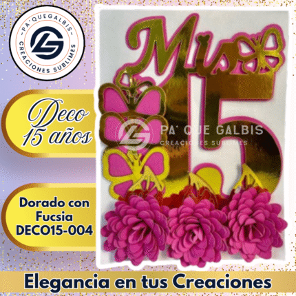 Deco 15 años Dorado con Fucsia #DECO15-004