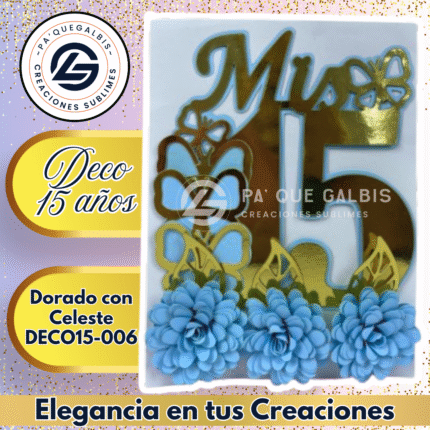 Deco 15 Años Dorado con Azul Celeste #DECO15-006