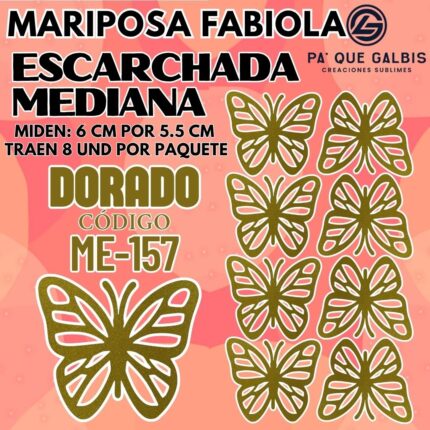 Mariposas Medianas Fabiola Dorado Escarchada 1 paquete contiene 8 und. código ME-157