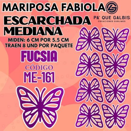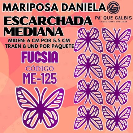 Mariposas Medianas Daniela Fuscia Escarchada 1 paquete contiene 8 und. código ME-125