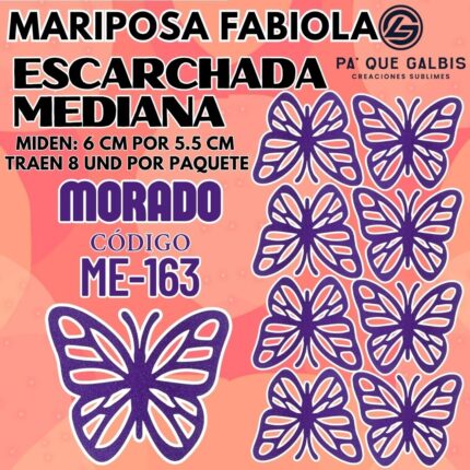 Mariposas Medianas Fabiola Morado Escarchada 1 paquete contiene 8 und. código ME-163