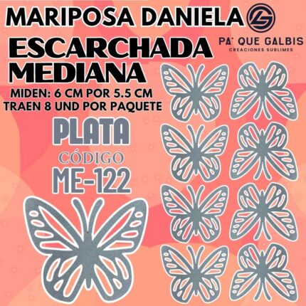 Mariposas Medianas Daniela Dorado Escarchada 1 paquete contiene 8 und. código ME-132