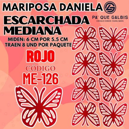 Mariposas Medianas Daniela Rojo Escarchada 1 paquete contiene 8 und. código ME-126
