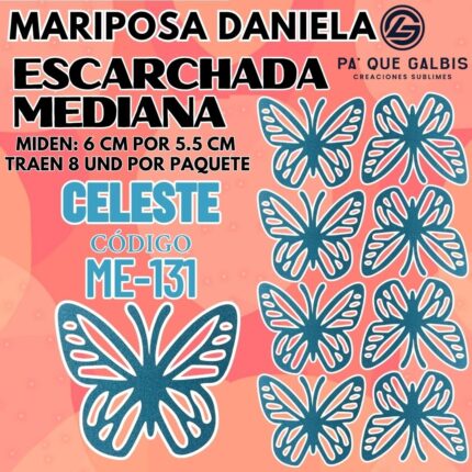 Mariposas Medianas Daniela Celeste Escarchada 1 paquete contiene 8 und. código ME-131