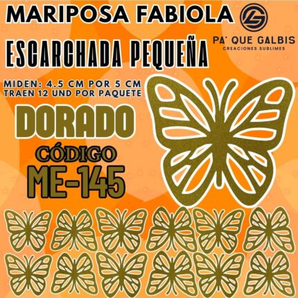 Mariposas Pequeñas Fabiola Dorada Escarchada 1 paquete contiene 12 und. código ME-145