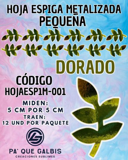 HOJAS PEQUEÑAS ESPIGA DORADO HOLOGRÁFICAS 1 PAQUETE CONTIENE 12 UND CÓDIGO HOJAESP1M-001