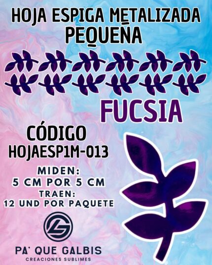 HOJAS PEQUEÑAS ESPIGA FUCSIA METALIZADAS 1 PAQUETE CONTIENE 12 UND CÓDIGO HOJAESP1M-013