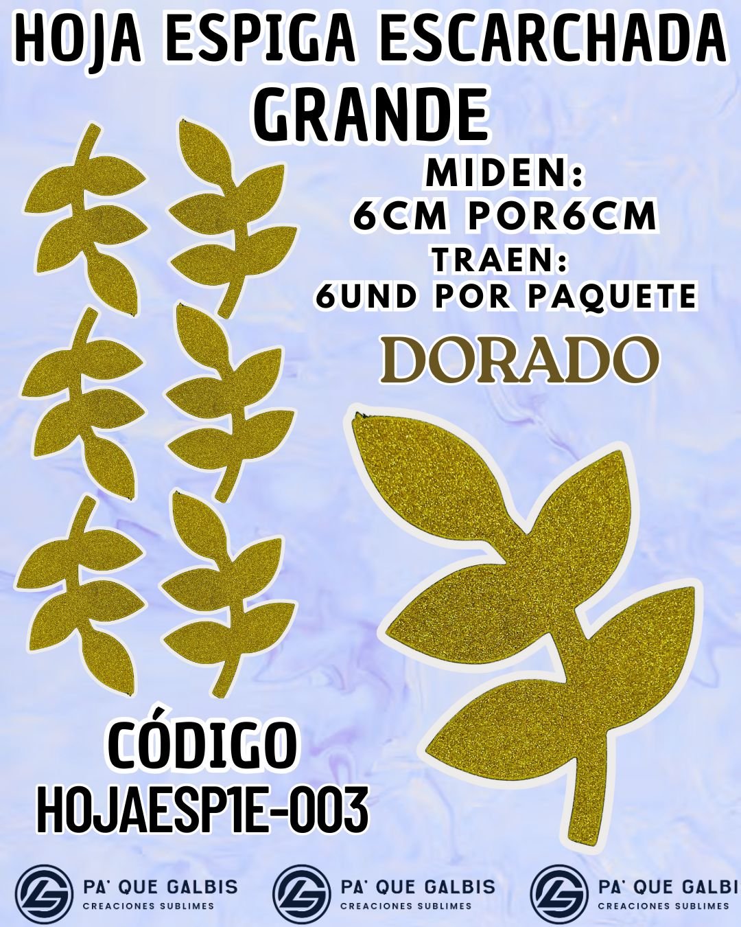 HOJAS GRANDES ESPIGA DORADO ESCARCHADAS 1 PAQUETE CONTIENE 6 UND CÓDIGO HOJAESP1M-003