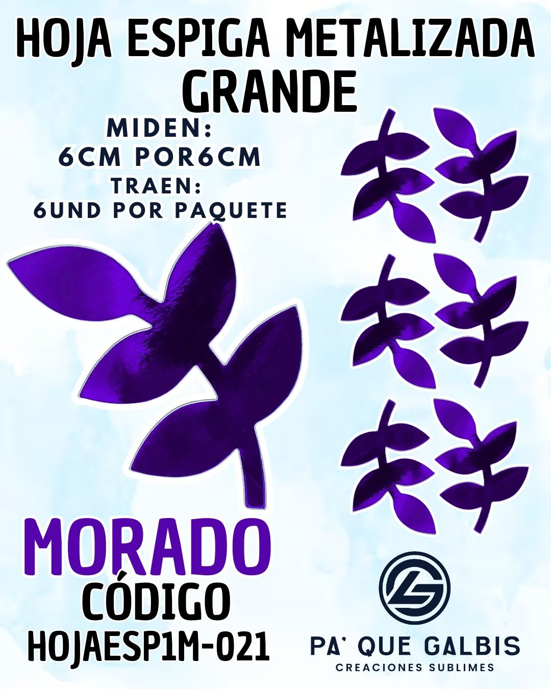 HOJAS GRANDES ESPIGA MORADO METALIZADAS 1 PAQUETE CONTIENE 6 UND CÓDIGO HOJAESP1M-021