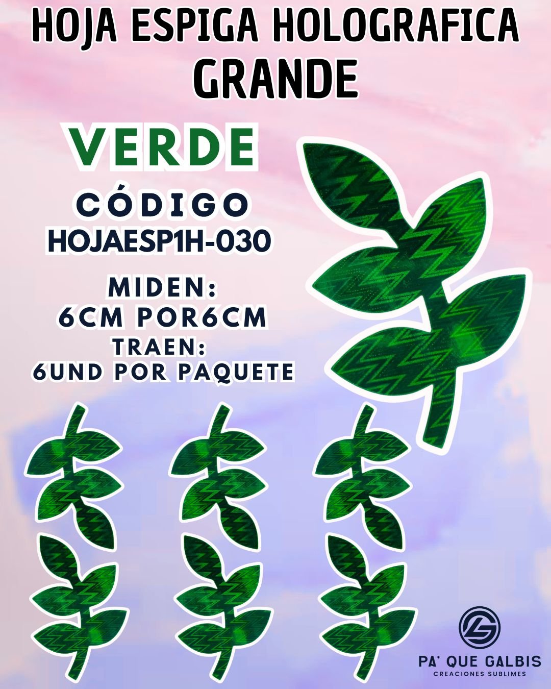 HOJAS GRANDES ESPIGA VERDE HOLOGRÁFICAS 1 PAQUETE CONTIENE 6 UND CÓDIGO HOJAESP1M-030