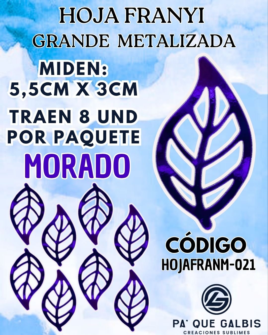 HOJAS GRANDES FRANYI MORADO METALIZADAS 1 PAQUETE CONTIENE 8 UND CÓDIGO HOJAFRANM-021