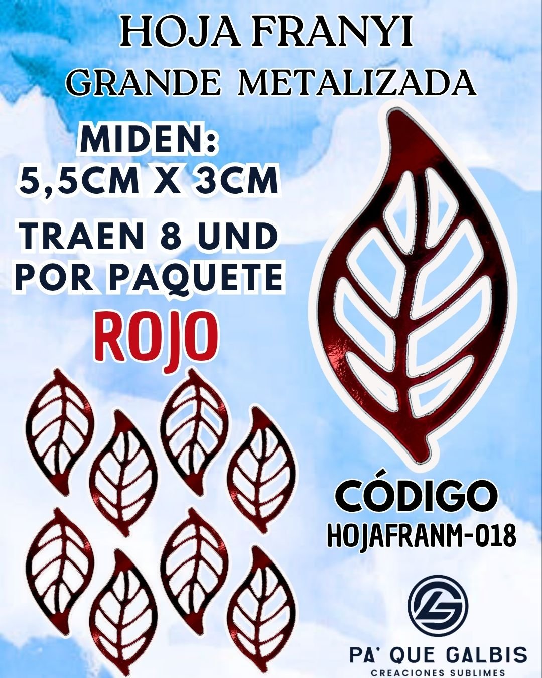 HOJAS GRANDES FRANYI ROJO METALIZADAS 1 PAQUETE CONTIENE 8 UND CÓDIGO HOJAFRANM-018