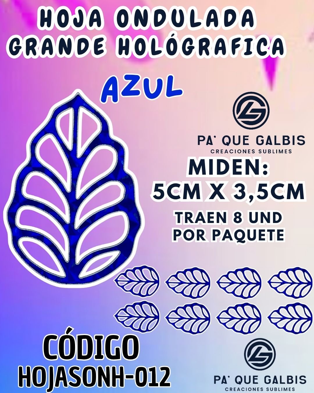 HOJAS GRANDES ONDULADA AZUL HOLOGRÁFICAS 1 PAQUETE CONTIENE 8 UND CÓDIGO HOJASONH-012