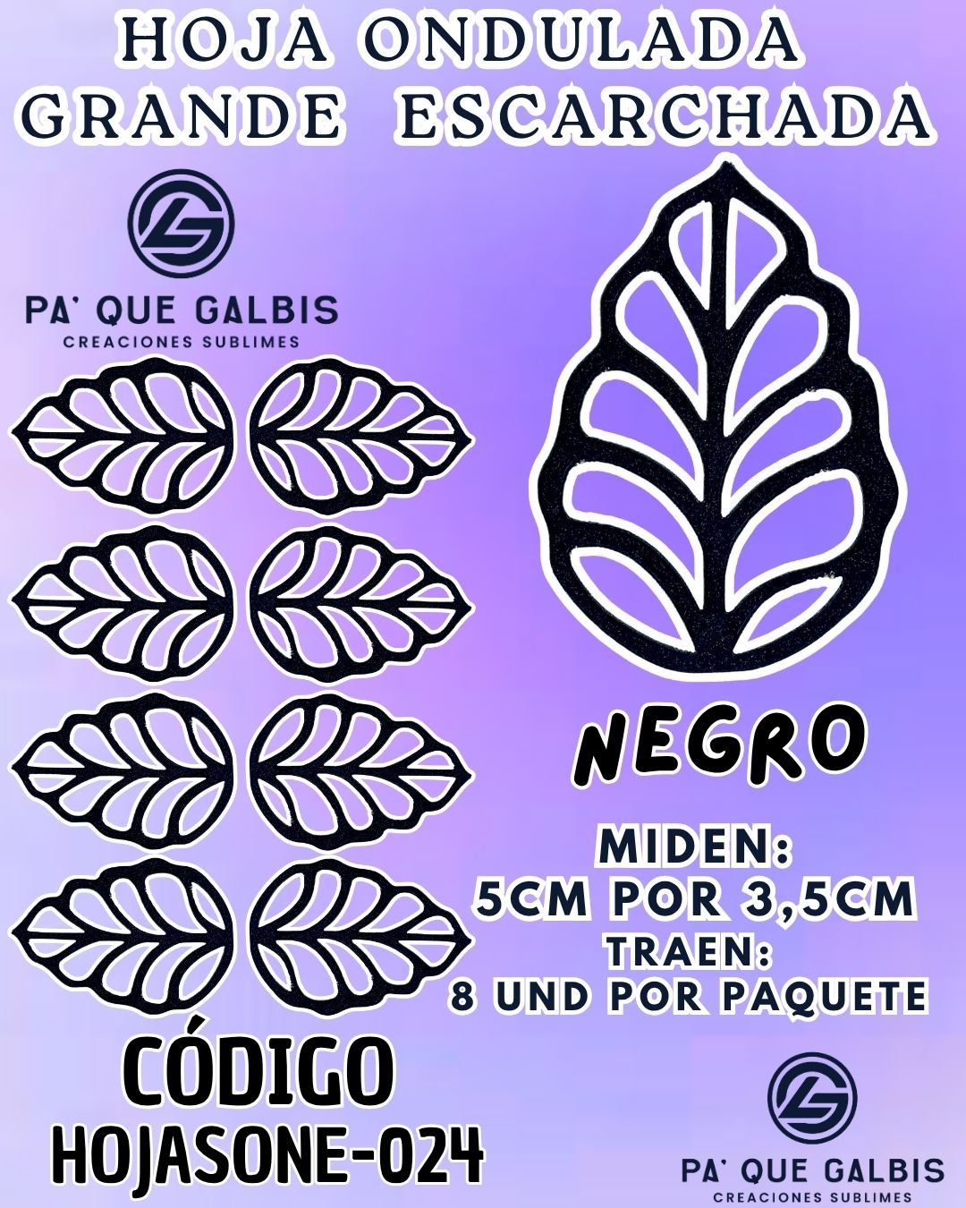 HOJAS GRANDES ONDULADA NEGRO ESCARCHADAS 1 PAQUETE CONTIENE 8 UND CÓDIGO HOJASONM-024