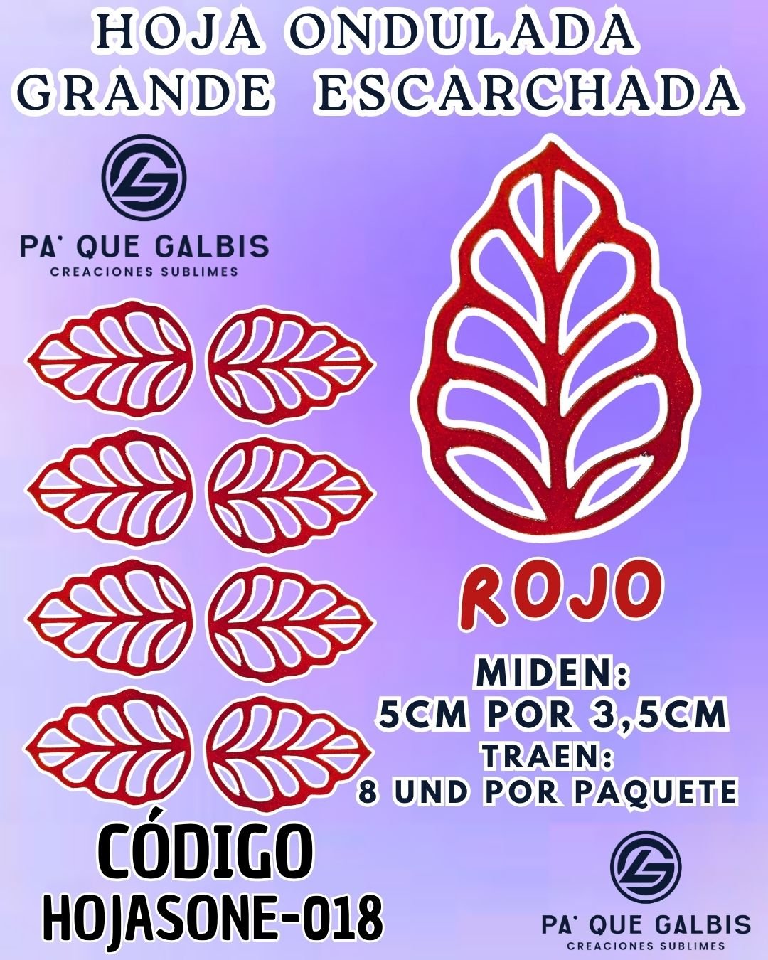 HOJAS GRANDES ONDULADA ROJO ESCARCHADAS 1 PAQUETE CONTIENE 8 UND CÓDIGO HOJASONM-018