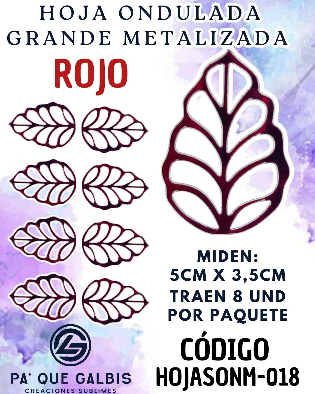 HOJAS GRANDES ONDULADA ROJO METALIZADAS 1 PAQUETE CONTIENE 8 UND CÓDIGO HOJASONM-018