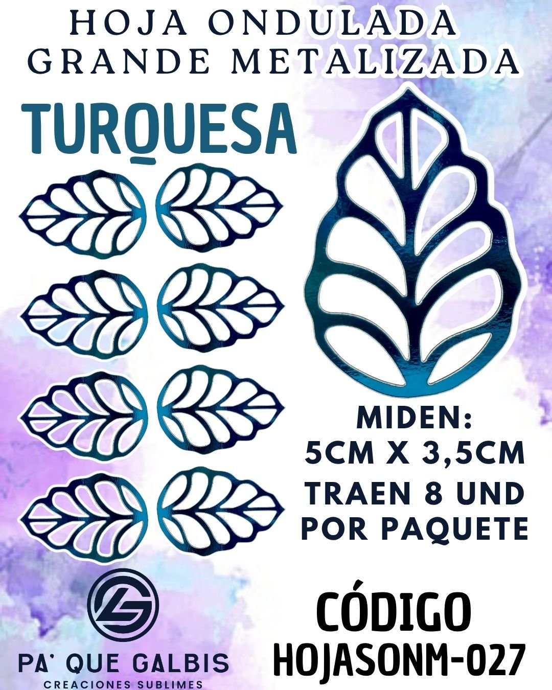 HOJAS GRANDES ONDULADA TURQUESA METALIZADAS 1 PAQUETE CONTIENE 8 UND CÓDIGO HOJASONM-027