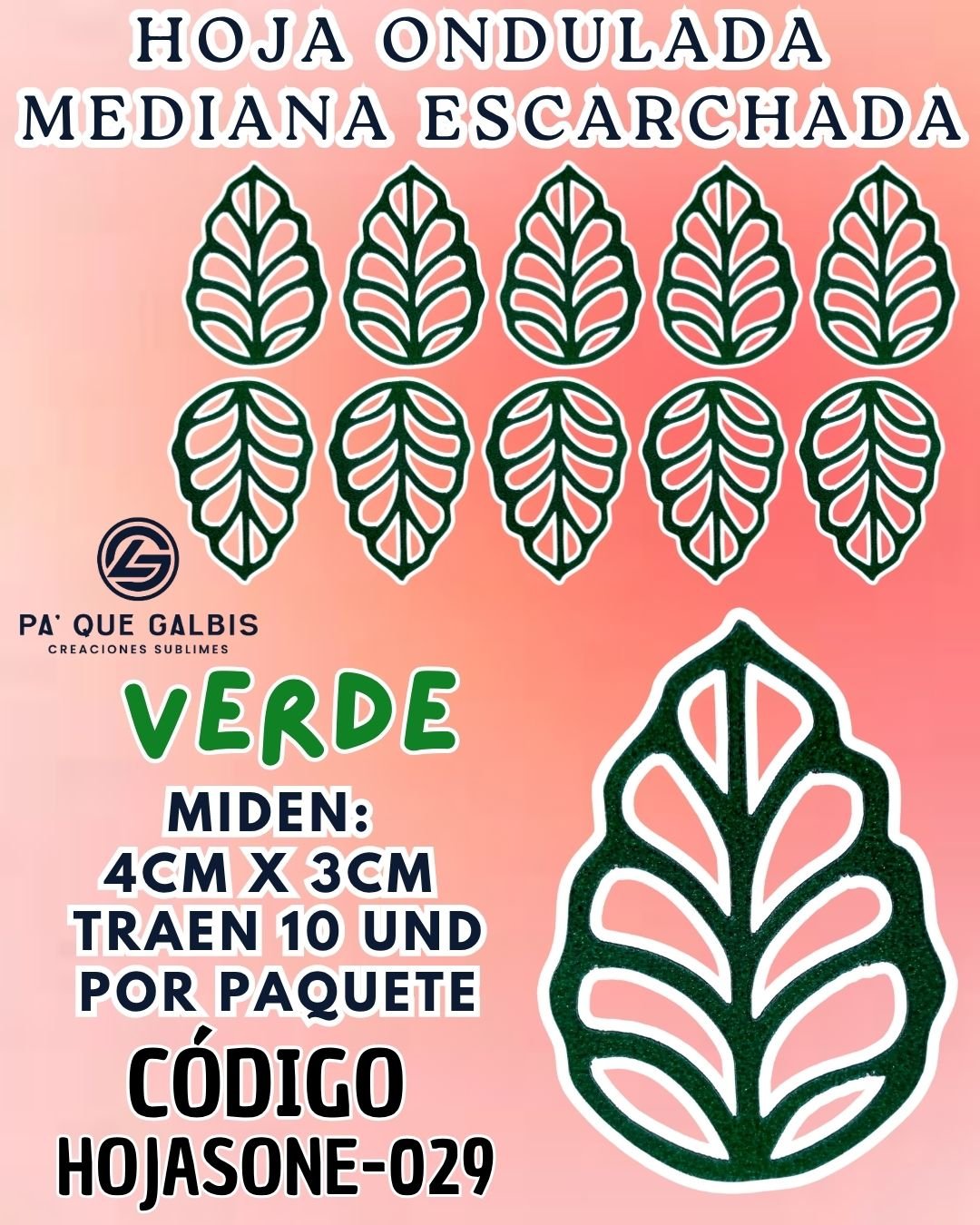HOJAS MEDIANAS ONDULADA VERDE ESCARCHADAS 1 PAQUETE CONTIENE 10 UND CÓDIGO HOJASONM-029