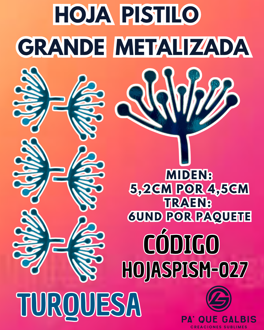 HOJAS GRANDES PISTILO TURQUESA GRANDES 1 PAQUETE CONTIENE 6 UND CÓDIGO HOJASPISM-027