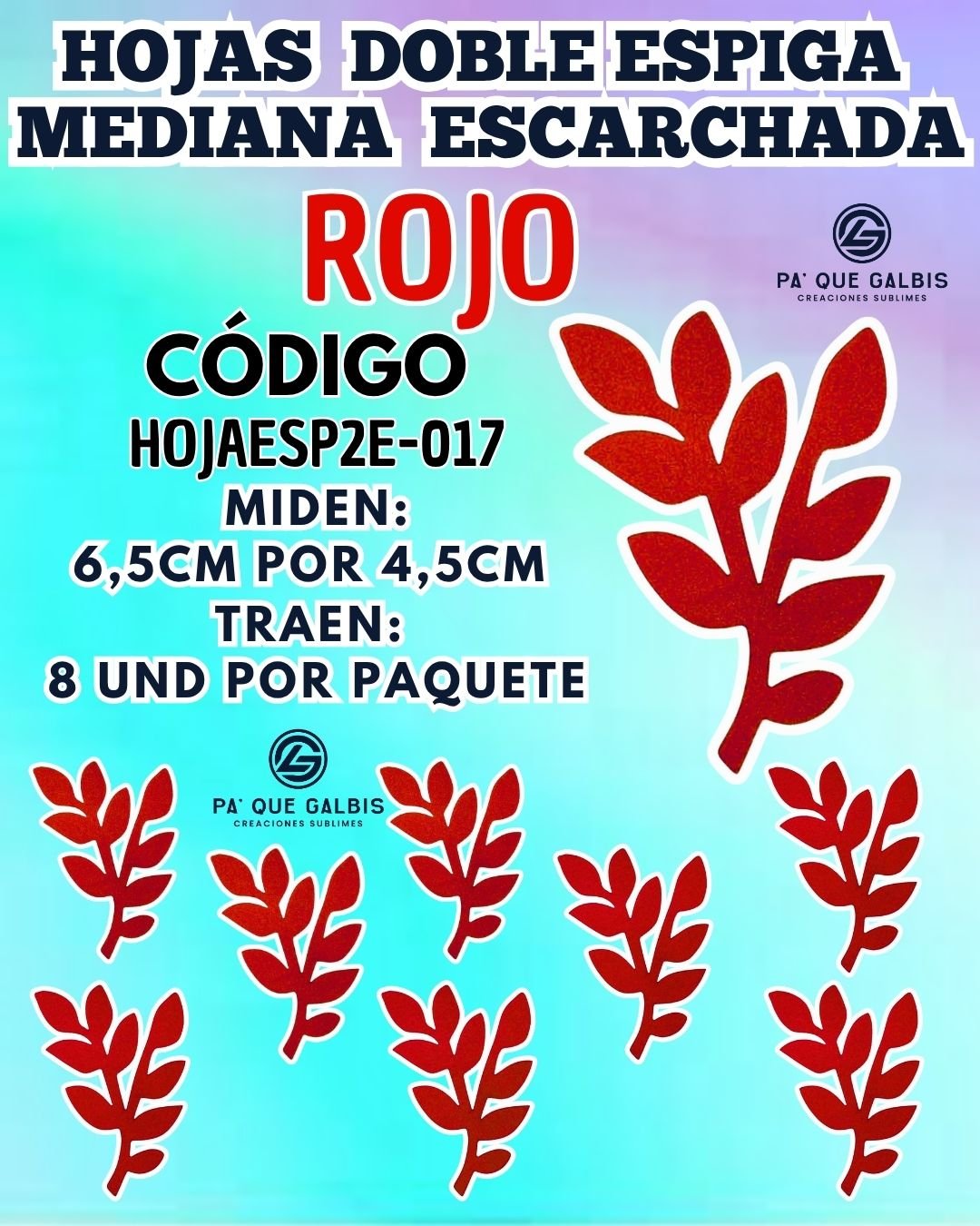 HOJAS MEDIANAS DOBLE ESPIGA ROJO ESCARCHADAS 1 PAQUETE CONTIENE 8 UND CÓDIGO HOJAESP2E-017