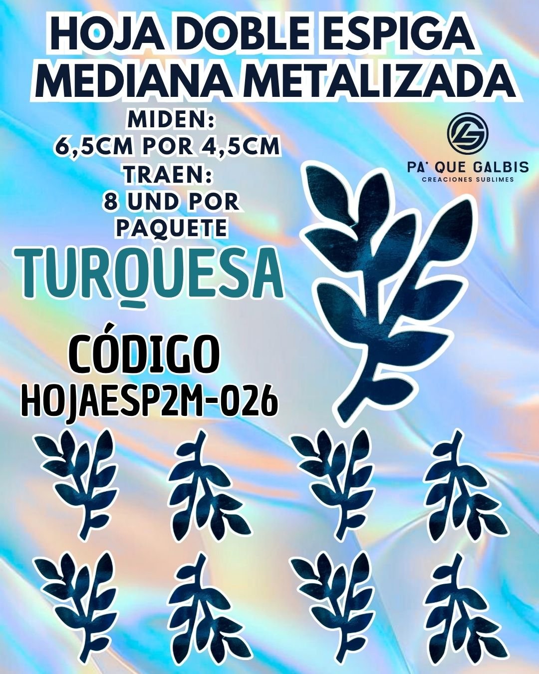 HOJAS MEDIANAS DOBLE ESPIGA TURQUESA METALIZADAS 1 PAQUETE CONTIENE 8 UND CÓDIGO HOJAESP2M-026