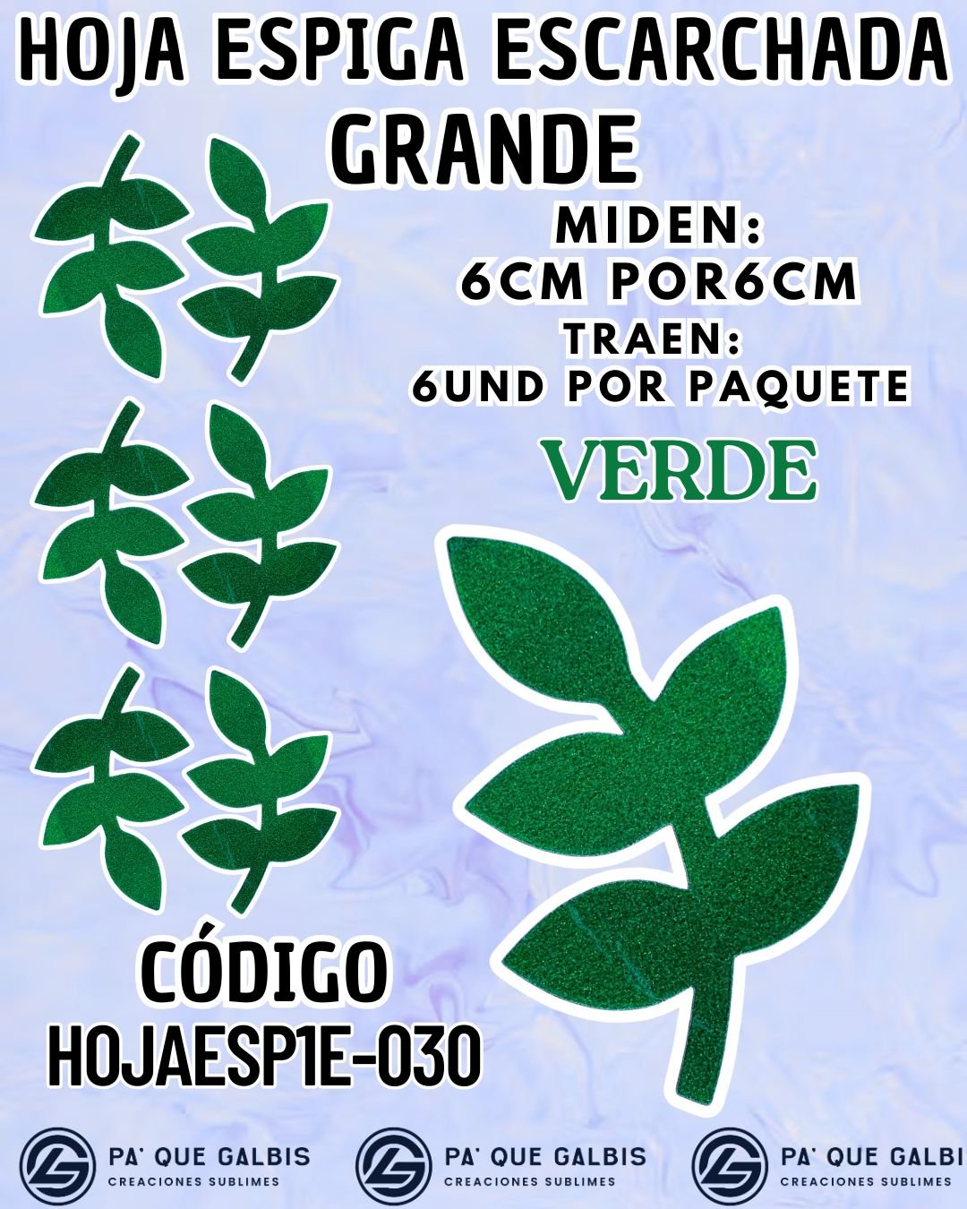 HOJAS GRANDES ESPIGA VERDE ESCARCHADAS 1 PAQUETE CONTIENE 6 UND CÓDIGO HOJAESP1M-030