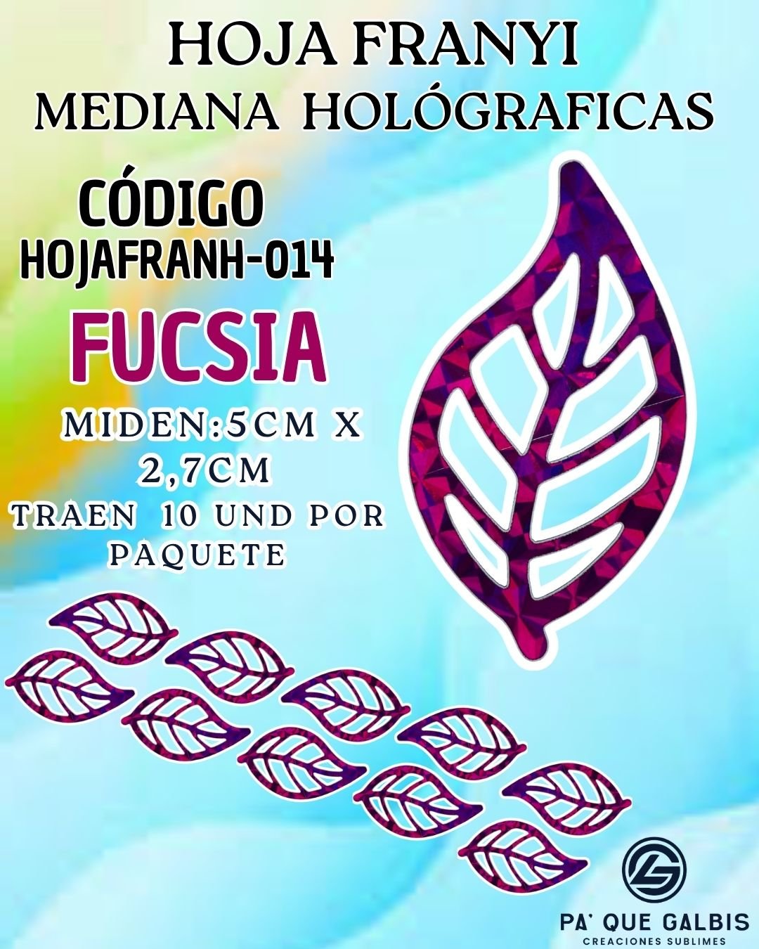 HOJAS MEDIANAS FRANYI FUCSIA HOLOGRÁFICAS 1 PAQUETE CONTIENE 10 UND CÓDIGO HOJAFRANH-006