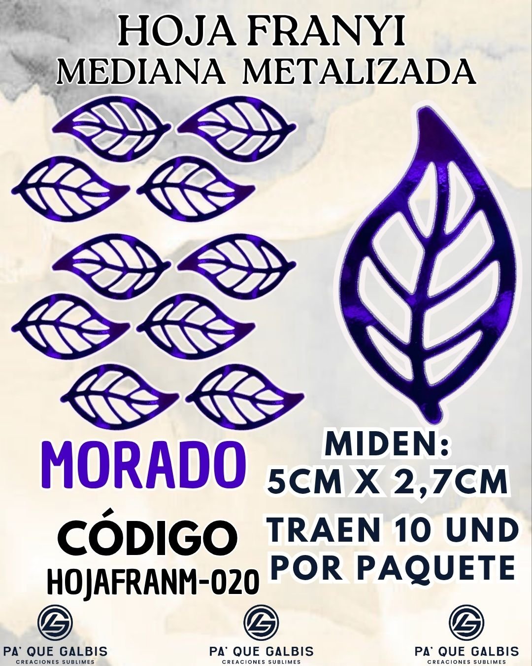 Sé el primero en valorar “HOJAS MEDIANAS FRANYI MORADO METALIZADAS 1 PAQUETE CONTIENE 10 UND CÓDIGO HOJAFRANM-020”