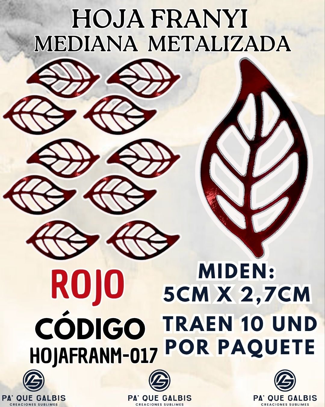 Sé el primero en valorar “HOJAS MEDIANAS FRANYI ROJO METALIZADAS 1 PAQUETE CONTIENE 10 UND CÓDIGO HOJAFRANM-017”