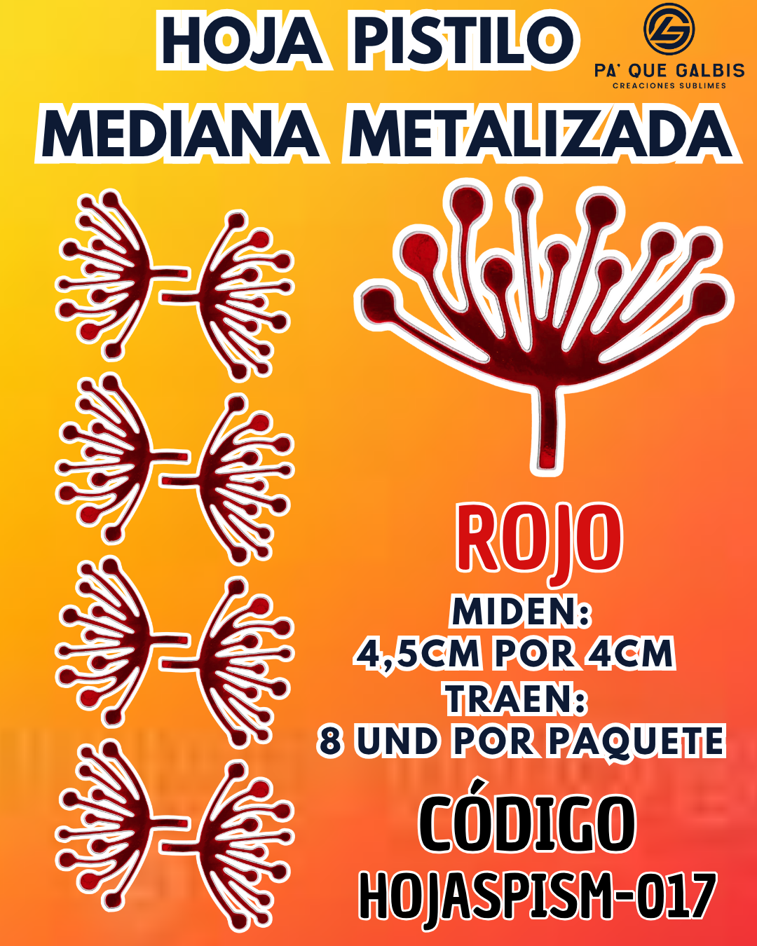 HOJAS MEDIANAS PISTILO ROJO GRANDES 1 PAQUETE CONTIENE 8 UND CÓDIGO HOJASPISM-017