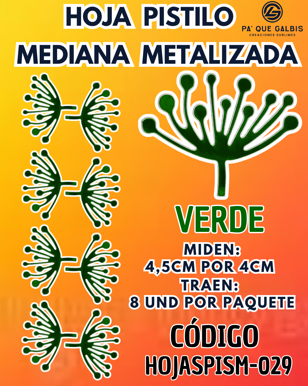 HOJAS MEDIANAS PISTILO VERDE GRANDES 1 PAQUETE CONTIENE 8 UND CÓDIGO HOJASPISM-029