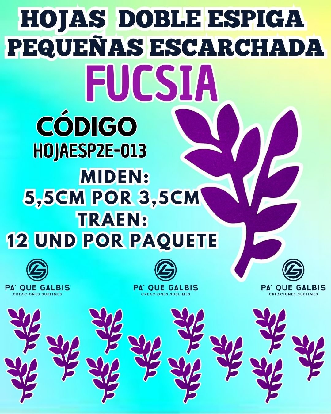 HOJAS PEQUEÑAS DOBLE ESPIGA FUCSIA ESCARCHADAS 1 PAQUETE CONTIENE 12 UND CÓDIGO HOJAESP2E-013