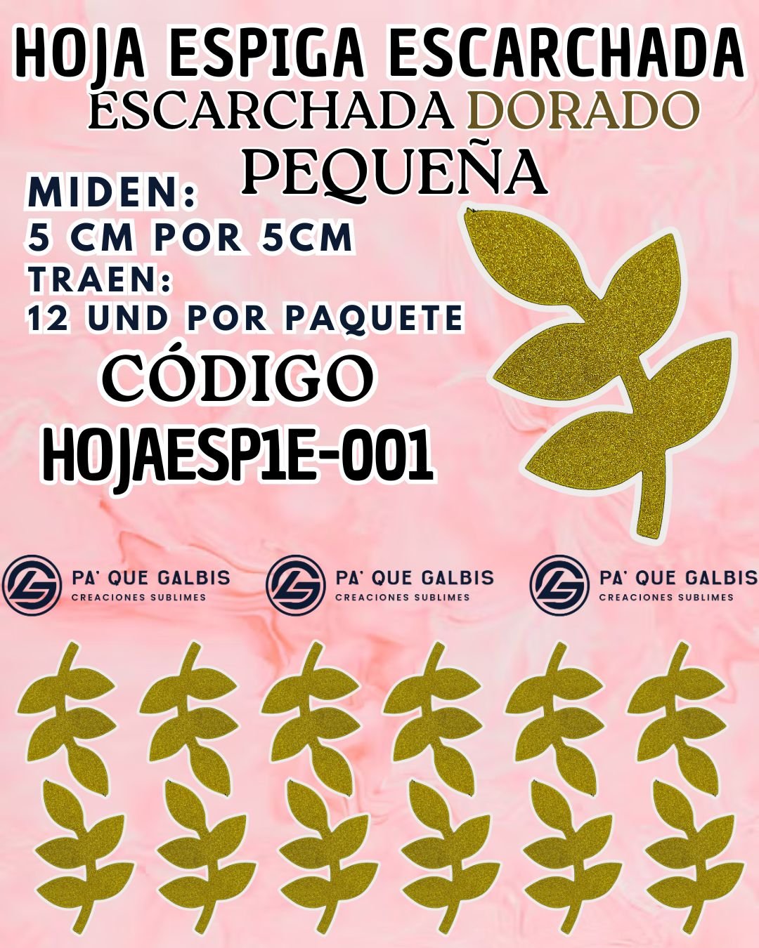 HOJAS PEQUEÑAS ESPIGA DORADO ESCARCHADAS 1 PAQUETE CONTIENE 12 UND CÓDIGO HOJAESP1M-001