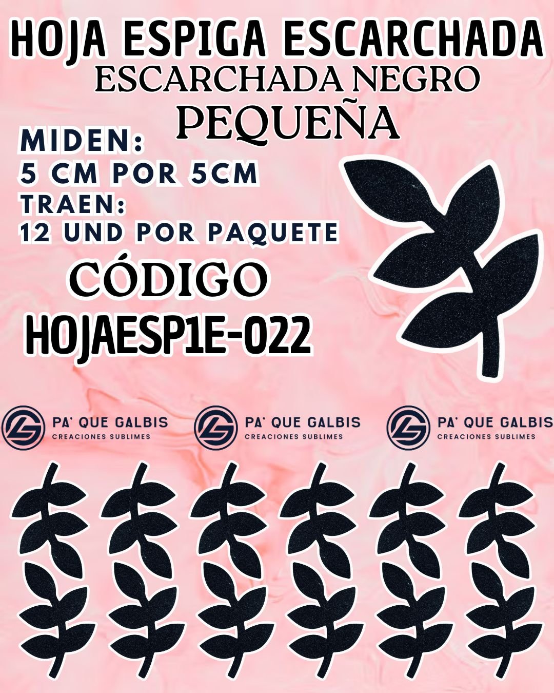 HOJAS PEQUEÑAS ESPIGA NEGRO ESCARCHADAS 1 PAQUETE CONTIENE 12 UND CÓDIGO HOJAESP1M-022