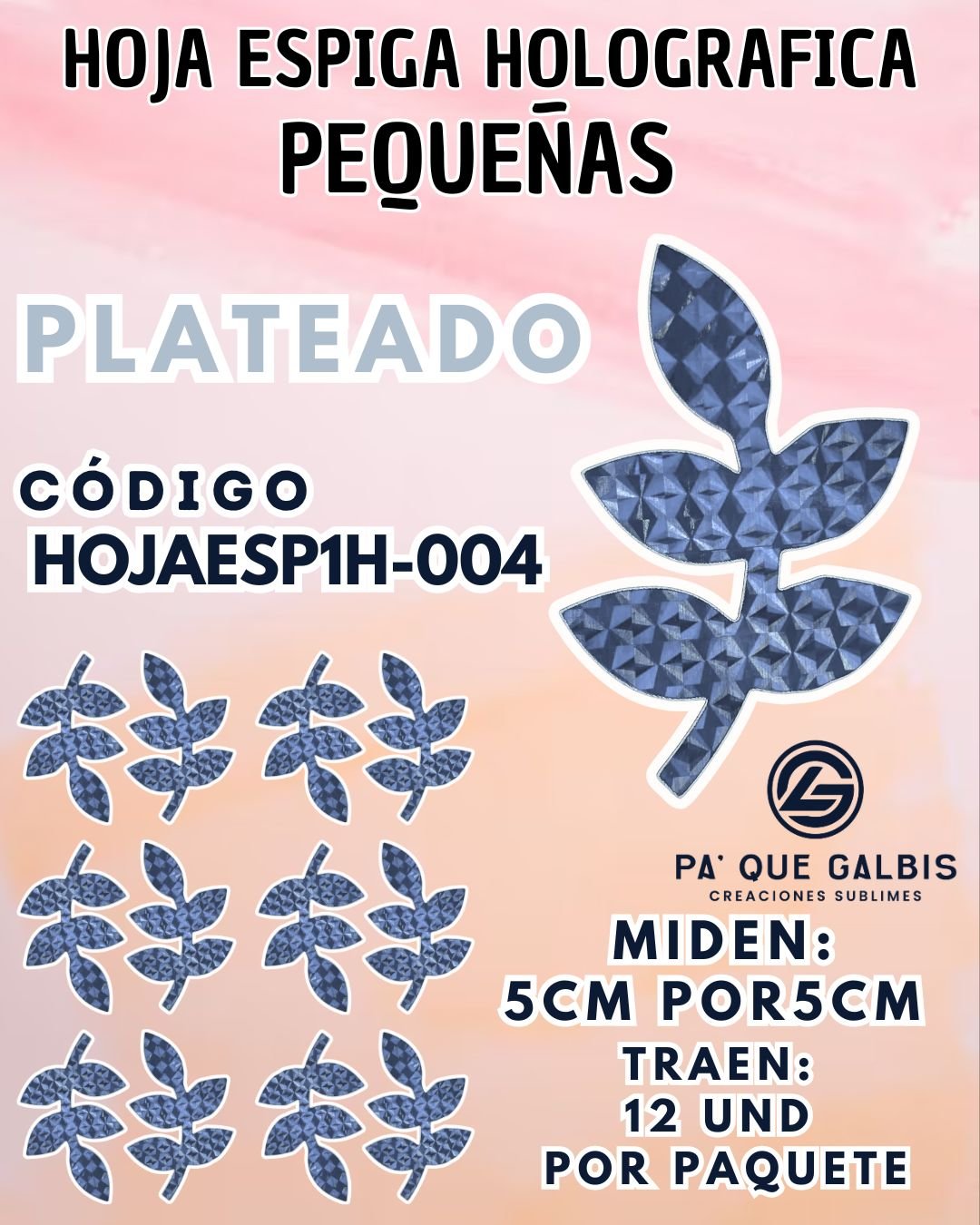 HOJAS PEQUEÑAS ESPIGA PLATEADO HOLOGRÁFICAS 1 PAQUETE CONTIENE 12 UND CÓDIGO HOJAESP1M-004