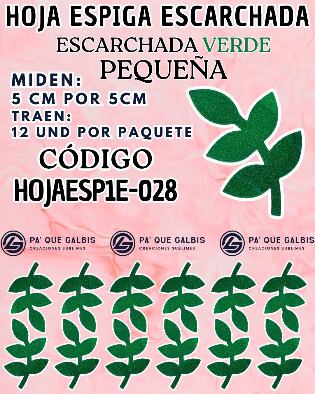 HOJAS PEQUEÑAS ESPIGA VERDE ESCARCHADAS 1 PAQUETE CONTIENE 12 UND CÓDIGO HOJAESP1M-028
