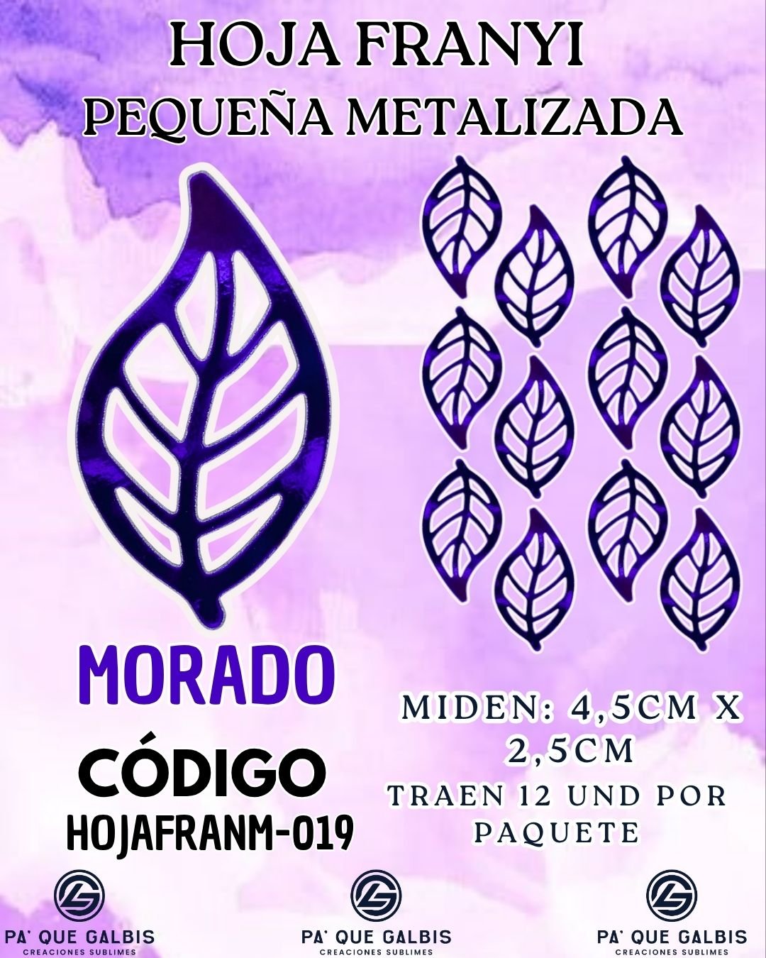 HOJAS PEQUEÑAS FRANYI MORADO METALIZADAS 1 PAQUETE CONTIENE 12 UND CÓDIGO HOJAFRANM-019
