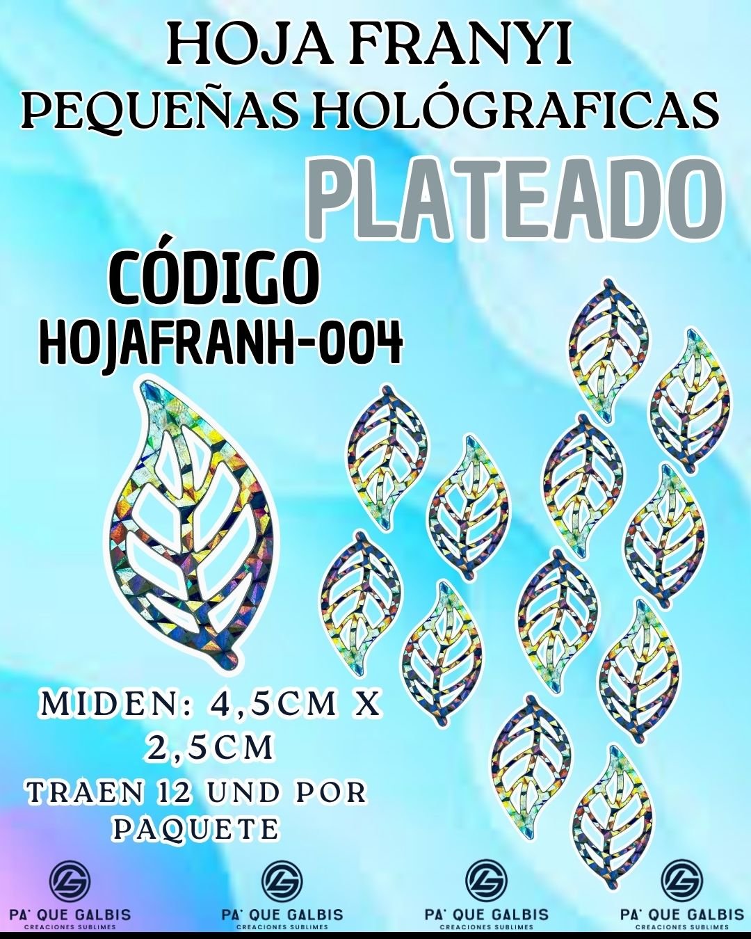 HOJAS PEQUEÑAS FRANYI PLATEADO HOLOGRÁFICAS 1 PAQUETE CONTIENE 12 UND CÓDIGO HOJAFRANH-004