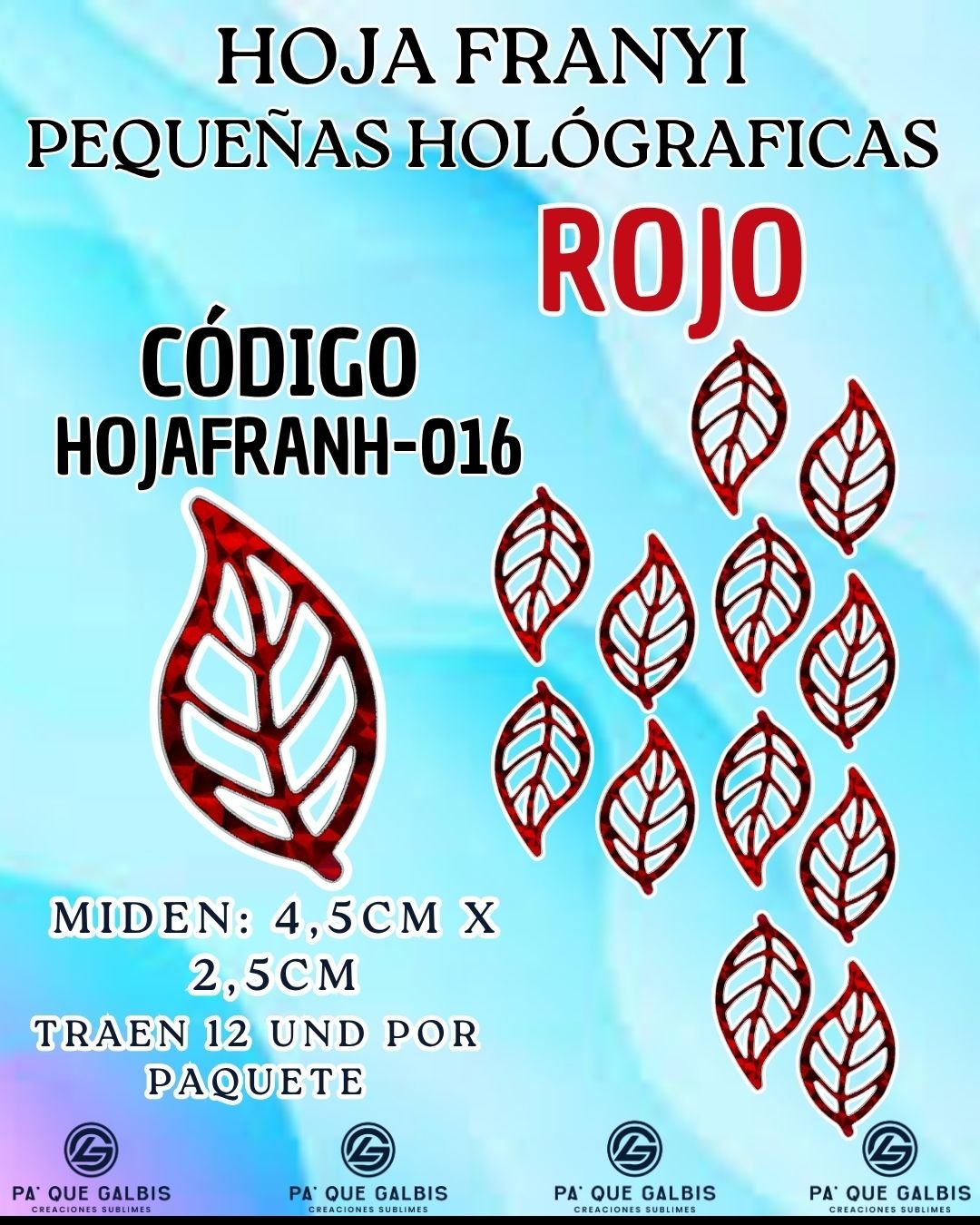 HOJAS PEQUEÑAS FRANYI ROJO HOLOGRÁFICAS 1 PAQUETE CONTIENE 12 UND CÓDIGO HOJAFRANH-016