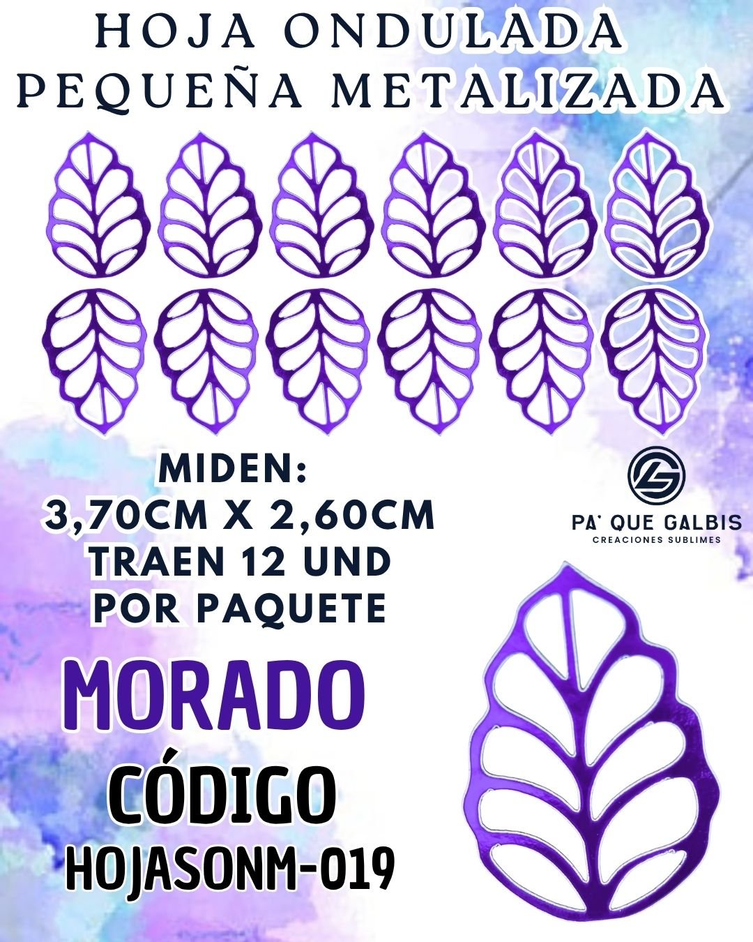 HOJAS PEQUEÑAS ONDULADA MORADO METALIZADAS 1 PAQUETE CONTIENE 12 UND CÓDIGO HOJASONM-019