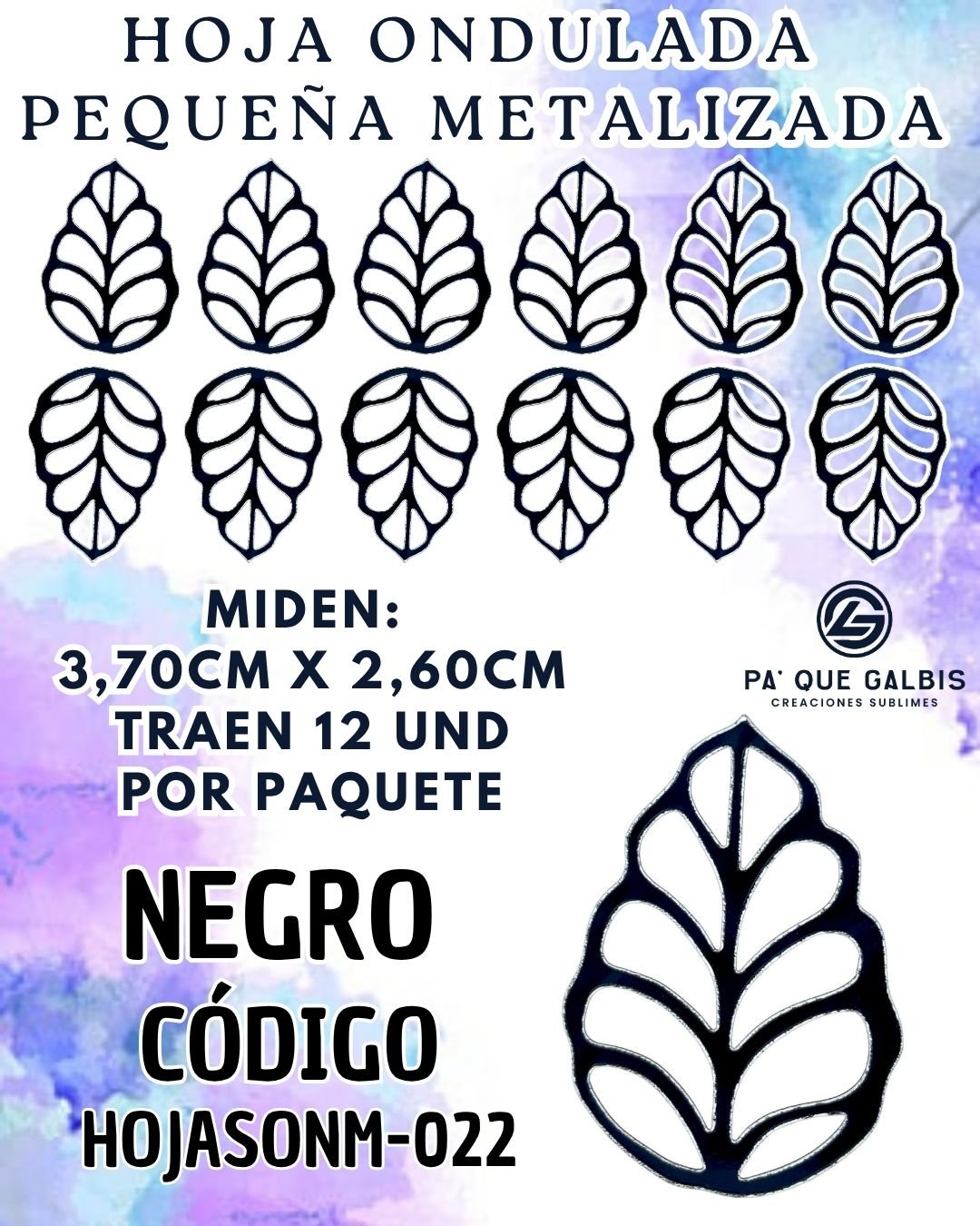 HOJAS PEQUEÑAS ONDULADA NEGRO METALIZADAS 1 PAQUETE CONTIENE 12 UND CÓDIGO HOJASONM-022