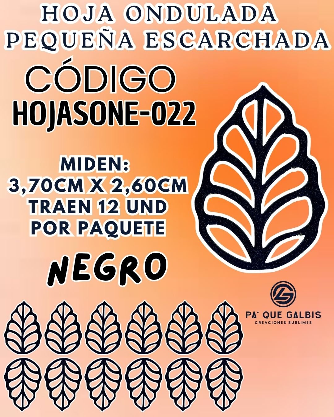 HOJAS PEQUEÑAS ONDULADA NEGRO ESCARCHADAS 1 PAQUETE CONTIENE 12 UND CÓDIGO HOJASONM-022