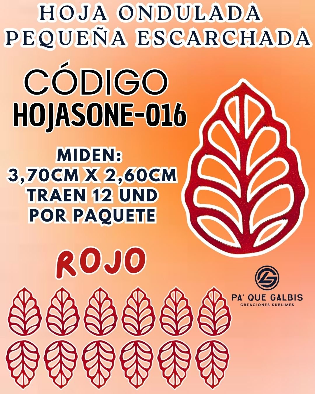 HOJAS PEQUEÑAS ONDULADA ROJO ESCARCHADAS 1 PAQUETE CONTIENE 12 UND CÓDIGO HOJASONM-016