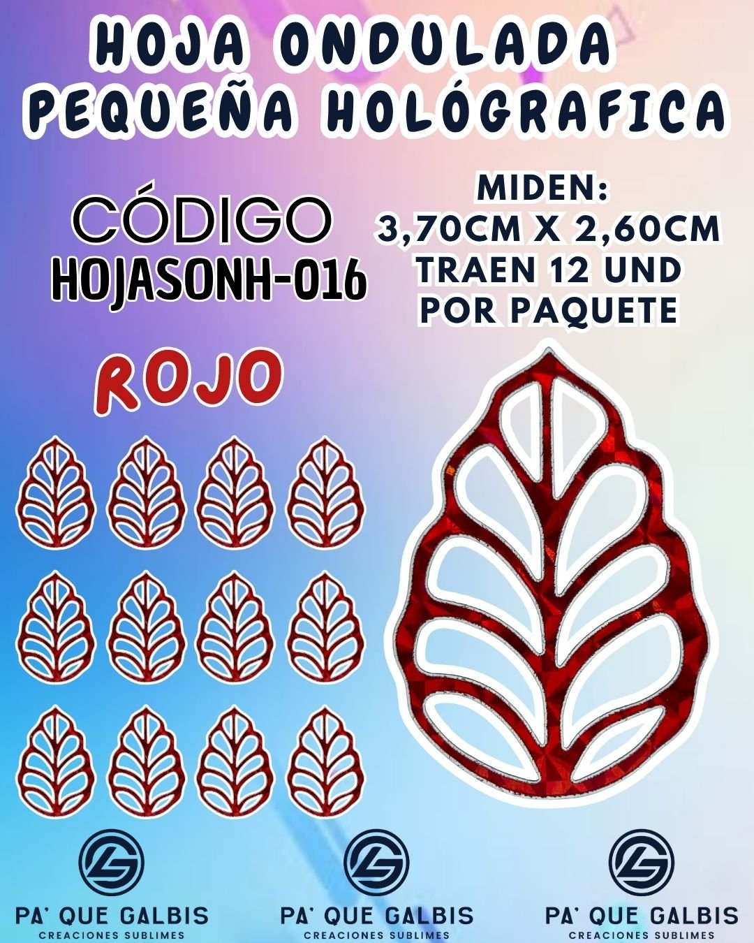 HOJAS PEQUEÑAS ONDULADA ROJO HOLOGRÁFICAS 1 PAQUETE CONTIENE 12 UND CÓDIGO HOJASONH-016