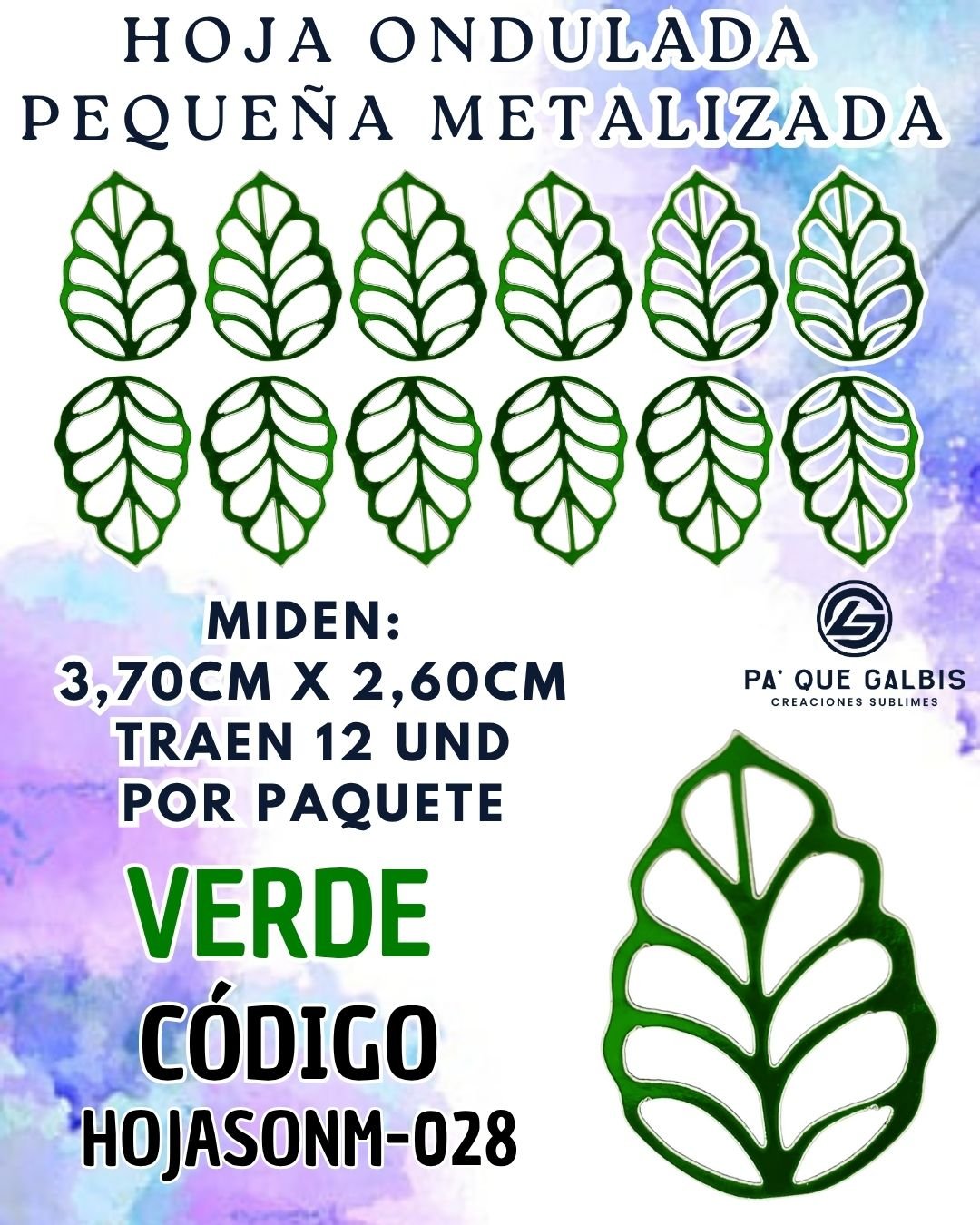 Sé el primero en valorar “HOJAS PEQUEÑAS ONDULADA VERDE METALIZADAS 1 PAQUETE CONTIENE 12 UND CÓDIGO HOJASONM-028”
