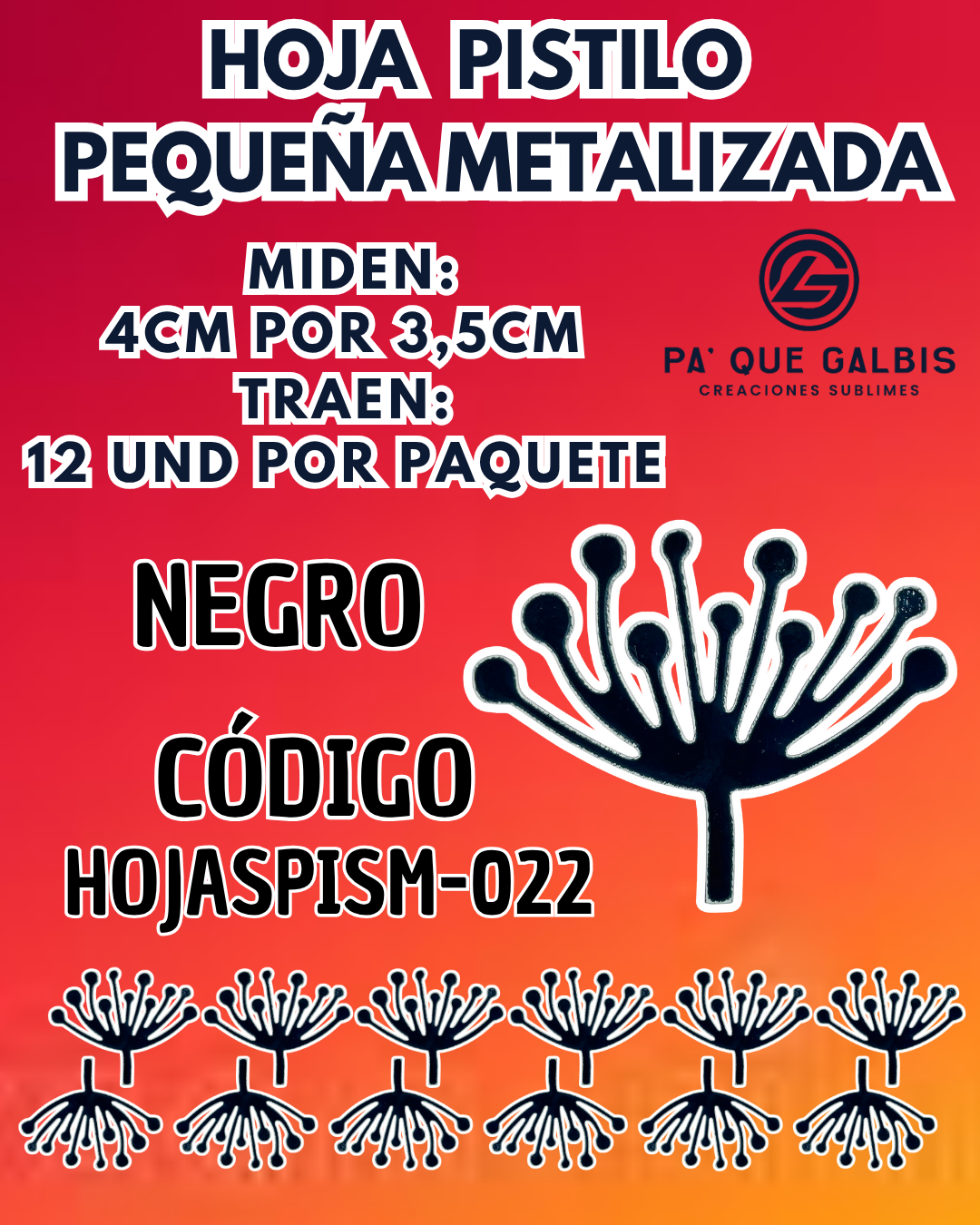 Sé el primero en valorar “HOJAS PEQUEÑAS PISTILO NEGRO 1 PAQUETE CONTIENE 12 UND CÓDIGO HOJASPISM-022”