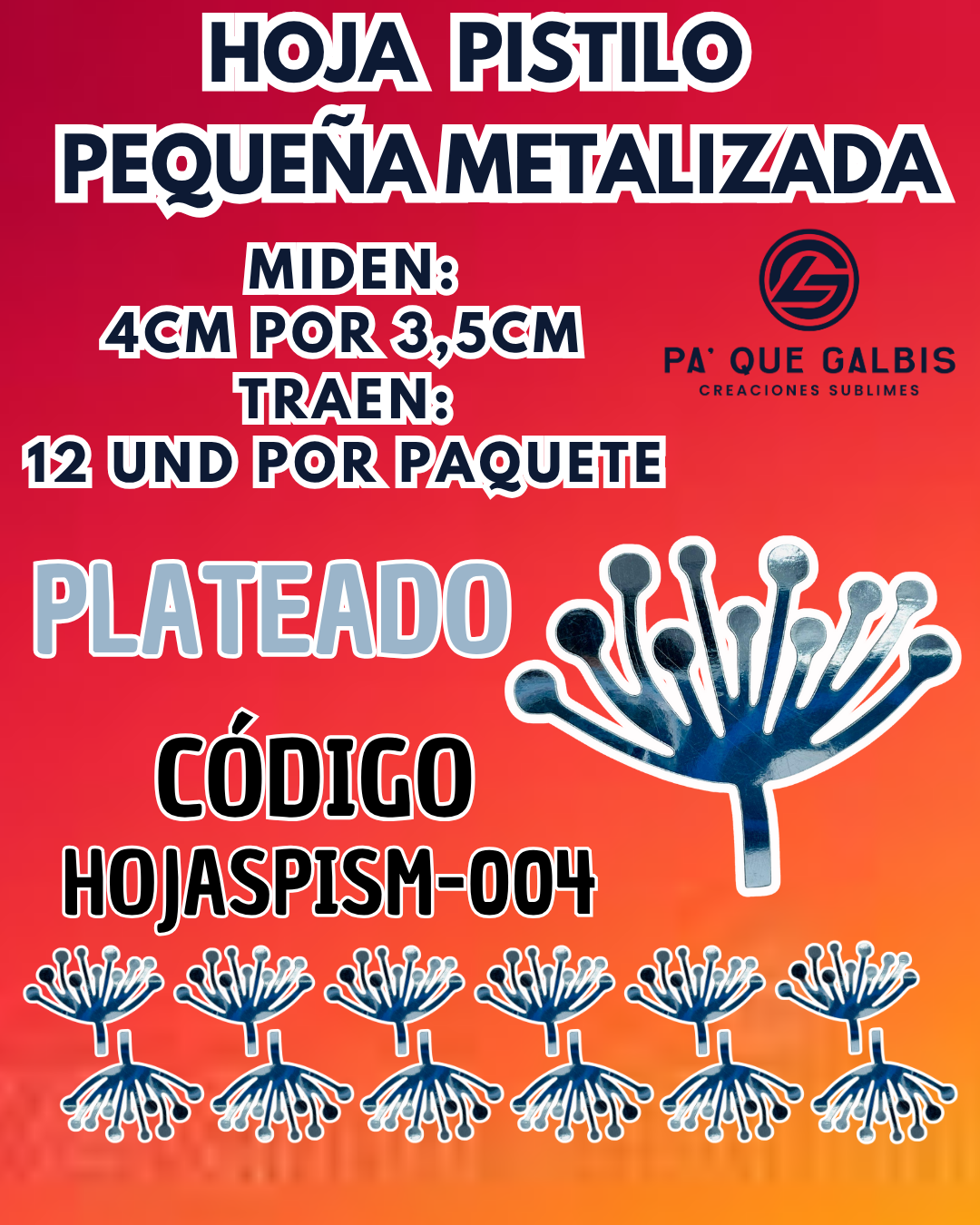 HOJAS PEQUEÑAS PISTILO PLATEADO 1 PAQUETE CONTIENE 12 UND CÓDIGO HOJASPISM-004