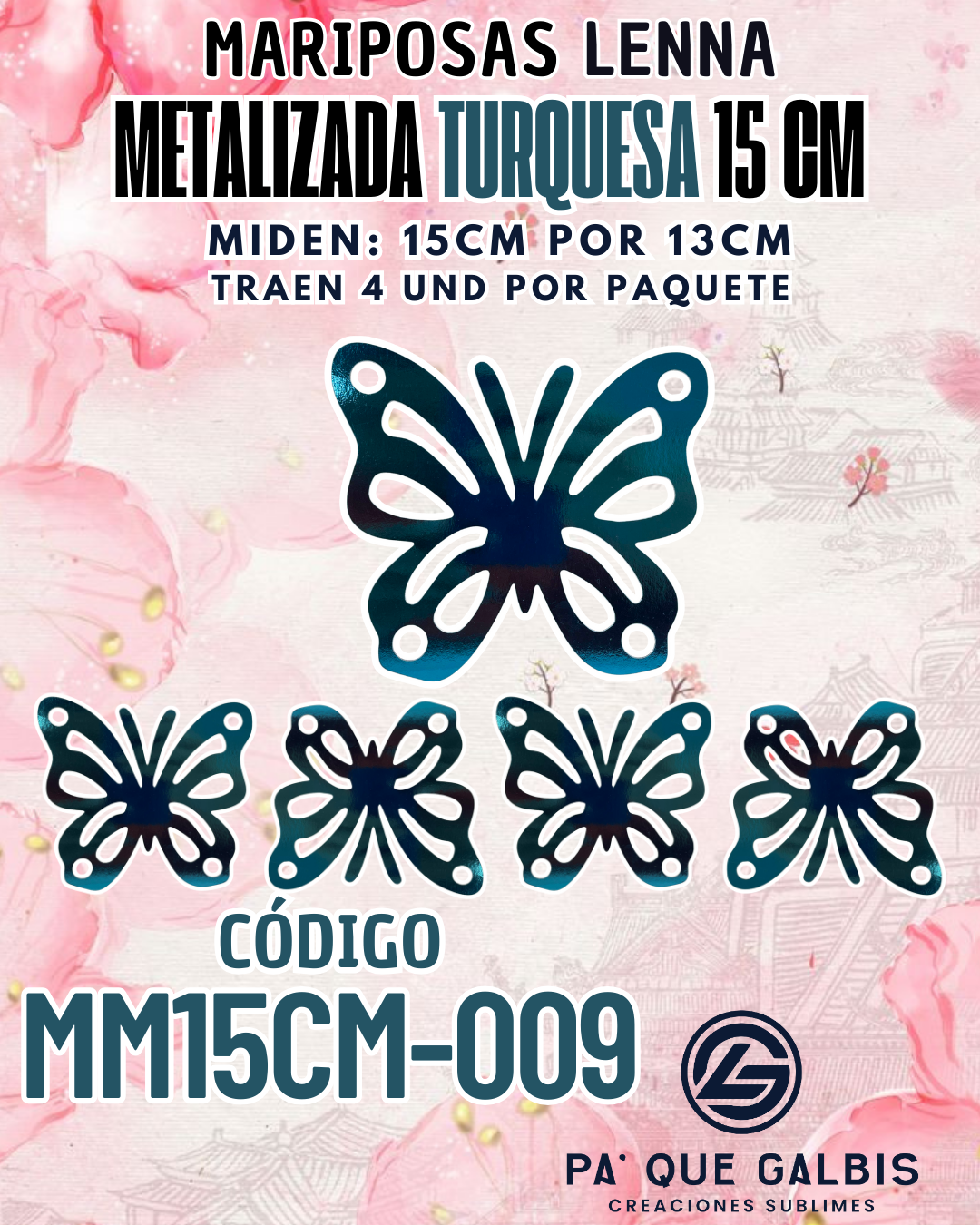 Mariposas 15 cm Lenna Turquesa metalizadas 1 paquete contiene 4 und. código MM15CM-009